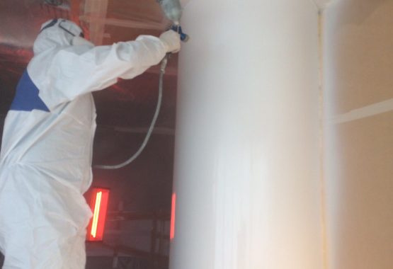 Luxury paint σε υποστυλώματα από εμφανές σκυρόδεμα, με άριστο αισθητικό αρχιτεκτονικό αποτέλεσμα της τελικής επίστρωσης.